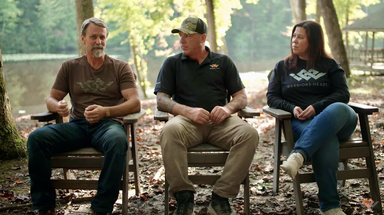 Warriors Heart Founders L to R: Tom Spooner, Josh Lannon, Lisa Lannon explain the positive impact of their optional holistic healing electives: fishing at the lake, gym, jiu jitsu, hiking trails, art studio, wood shop, metal shop, K9 therapy, equine thera